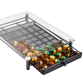 Cajón de cristal de almacenamiento Extra grande para cápsulas de café, Compatible con cápsulas bartejas, Compatible con 36 cápsulas
