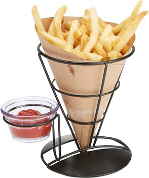 Soporte de exhibición de aperitivos de cono, cestas de patatas fritas, estante de exhibición de pollo, patatas fritas, soporte de Metal