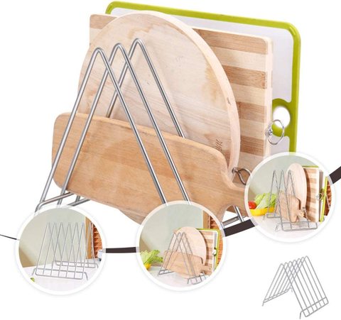 Organizador de tabla de cortar comercial, estante de acero inoxidable para picar, encimera de cocina, ollas, tapas de sartén, estante para almacenamiento